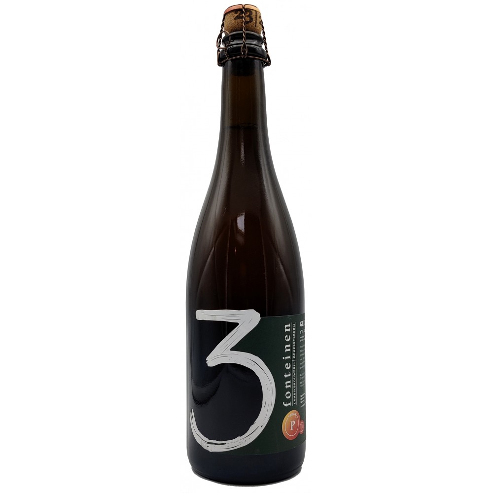 Season 2023-2024, Assemblage #2. Bottled on 21/11/2023. "For this Perzik, we macerated peaches from Ludo Rosseels from Gelrode, Vlaams-Brabant, Belgium. Maceration time was four months. For the maceration and the blending, we used lambikken from five different barrels and not less than sixteen different brews. Most lambik was one- and two-years old, and about one third was three years old. This way, the weigthed average age of the blend upon bottling was more than 14 months. The final fruit intensity is about 300 grams of ripe yellow peaches per litre of Perzik. 100% 3 Fonteinen."