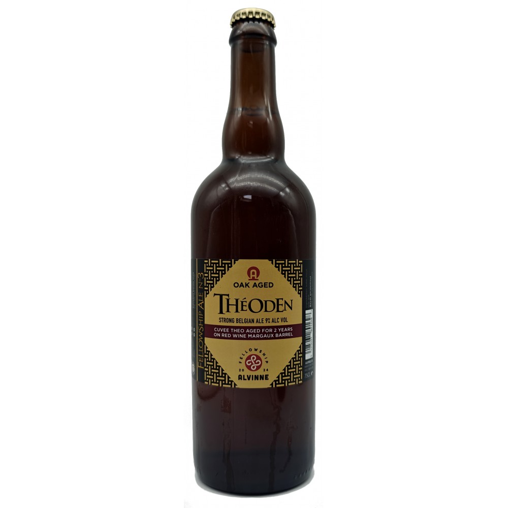 Fellowship 2024 Ale No 3. "In the cellars where silence reigns and the stone walls remember songs long forgotten, a noble brew was laid to rest. Theo, as it was once called, found slumber in a barrel of Margaux red wine-oak steeped in the blood of vineyards from lands far beyond the sea. For two years it dreamt beneath the earth, drawing wisdom from the wood, strength from the wine, and spirit from the stillness. When it awoke, it was no longer Theo. It had become Theodén - a kingly name, bold and grave, bearing the weight of time and the richness of its lineage. A beer for those who would drink with honor, and remember."