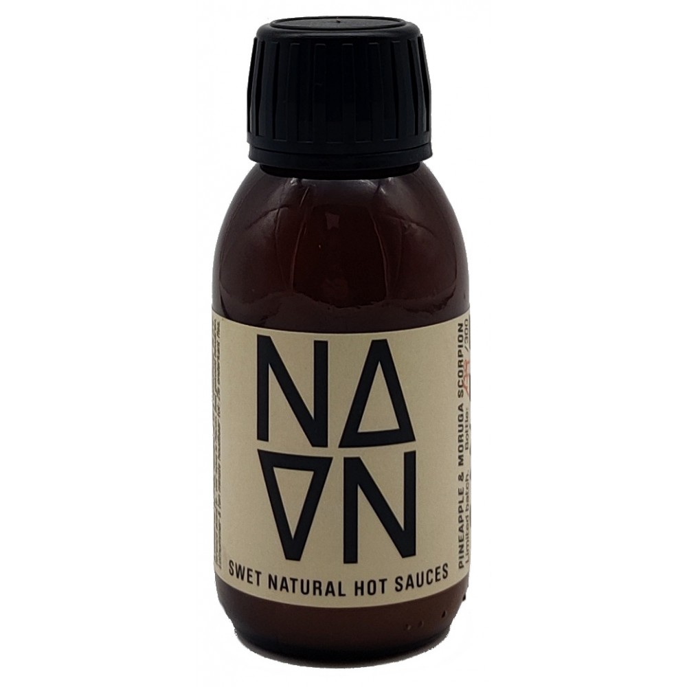 "The pure flavor of pineapple immediately followed by the deep and distinctive heat of the beautiful MORUGA TRINIDAD SCORPION BROWN pepper. MORUGA TRINIDAD SCORPION is currently second on the list of the world's hottest peppers. It has an average rating of 1,200,000 Scoville Units (SHU), up to 2,009,231 SHU. Heat: 10/10"
