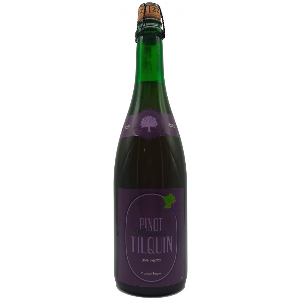 "Beer of spontaneous fermentation, the Pinot Meunier Tilquin sur marc is made from the fermentation of 100 g Pinot Meunier pomace (pressed grapes) by liter of lambic. Unfiltered and unpasteurized, this beer is refermented in the bottle."
