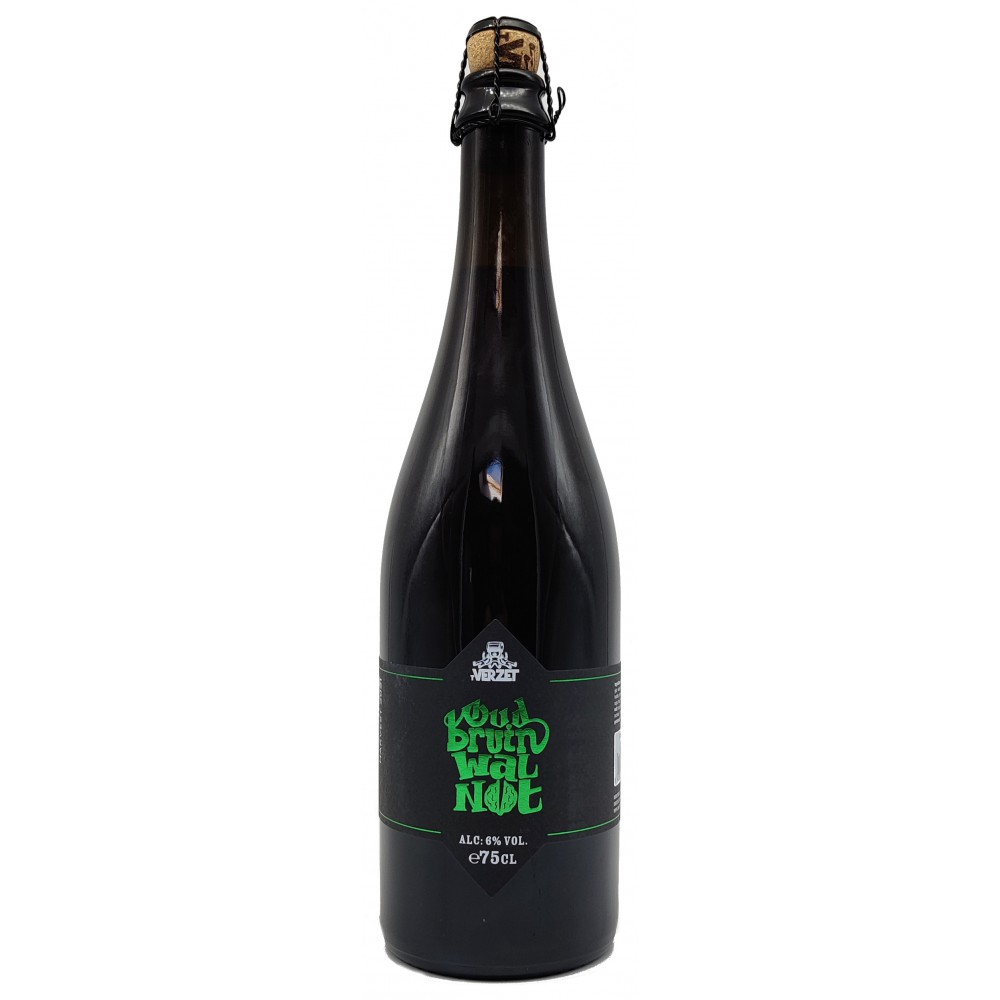 "This beer is created by adding green walnuts to beer that was aged on wooden barrels for at least one year. We picked the nuts in july last year in the garden of a friend. They were harvested when they were still greeen before the wooden shell started to appear. The young fruit gives a herbal, nutty aroma to the beer. The subtle bitterness balances the fresh sourness of the Oud Bruin. Go nuts and try this interesting infusion."
