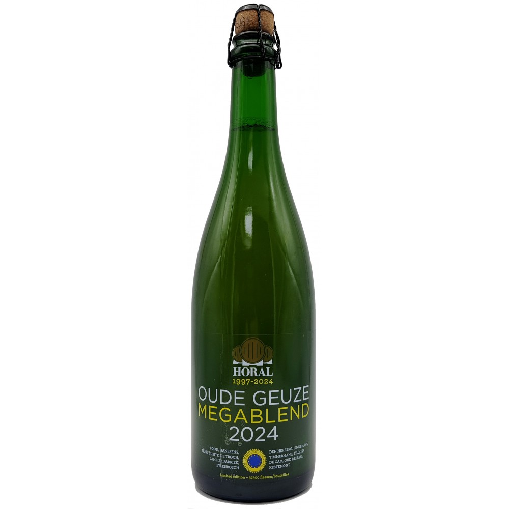 The HORAL Oude Geuze Megablend 2022 is a blend of young and old Lambics from all HORAL producers (Boon, De Cam, De Troch, Den Herberg, Eylenbosch, Hanssens, Kestemont, Lambiek Fabriek, Lindemans, Mort Subite, Oud Beersel, Tilquin and Timmermans).