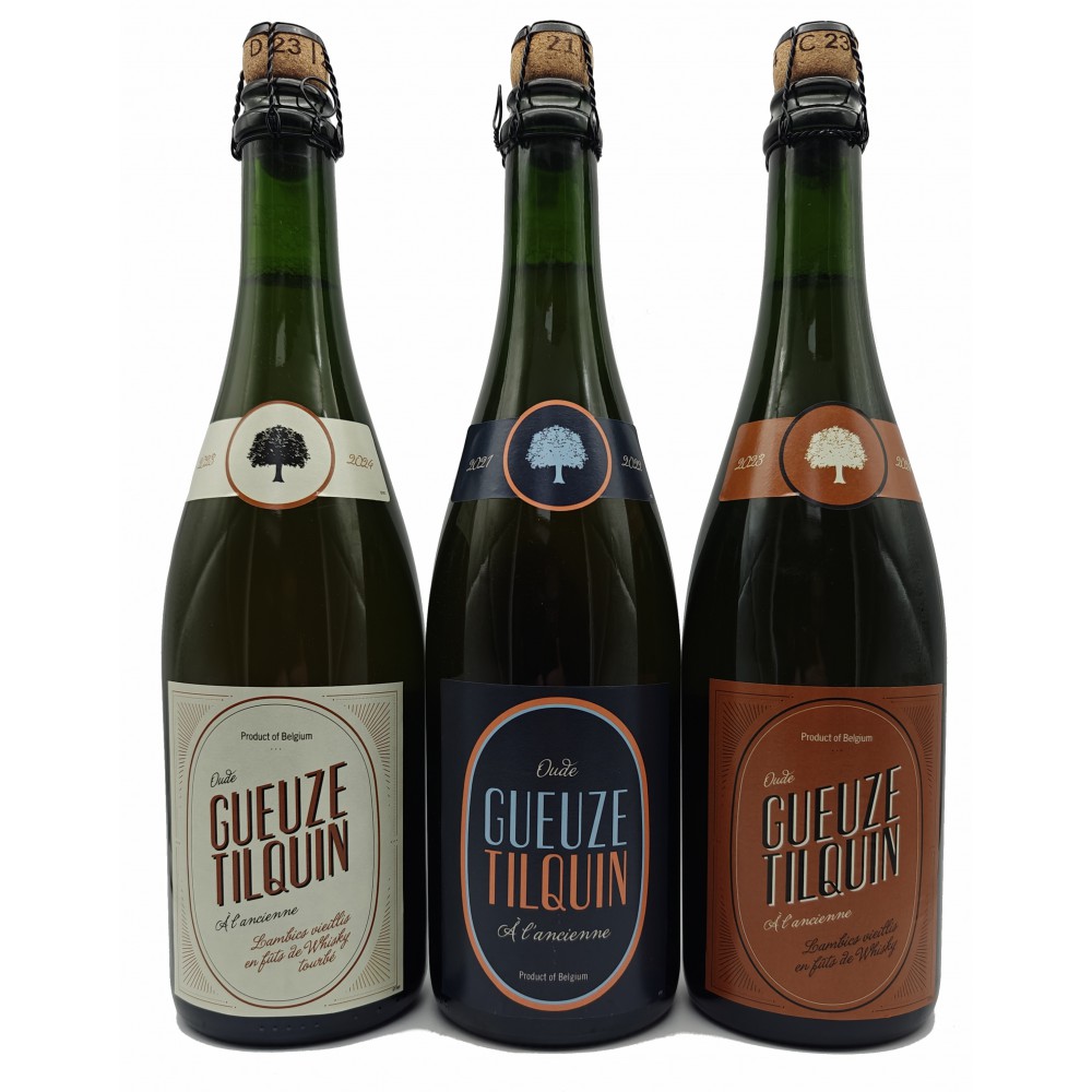 Pack consisting of the two gueuze aged in whicky barrels: Oude Gueuze Tilquin à l'ancienne - Lambics Vieillis en Fûts de Whisky, Oude Gueuze Tilquin à l'ancienne - Lambics Vieillis en Fûts de Whisky Tourbé & Oude Gueuze Tilquin à l'ancienne 2021-2022 75cl