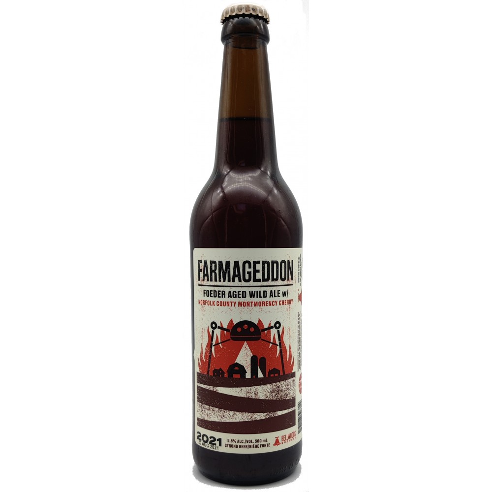 "Farmageddon is our wild farmhouse ale that we've been brewing, blending, and aging for almost as many years as we've been open. The blending process allows us to maintain a common thread across batches, the aging adds nuanced layers, while the brett and bacteria work hard to create small idiosyncrasies in each release. It's a refined, effervescent, and delicious beer worthy of special occasions and idle weeknights. And every so often we decide to age a batch with Montmorency cherries because sometimes the cliche "with a cherry on top" is both figurative and literal. Not to mention, delicious. Lots of balanced acidity, distinct cherry aromatics and flavour "
