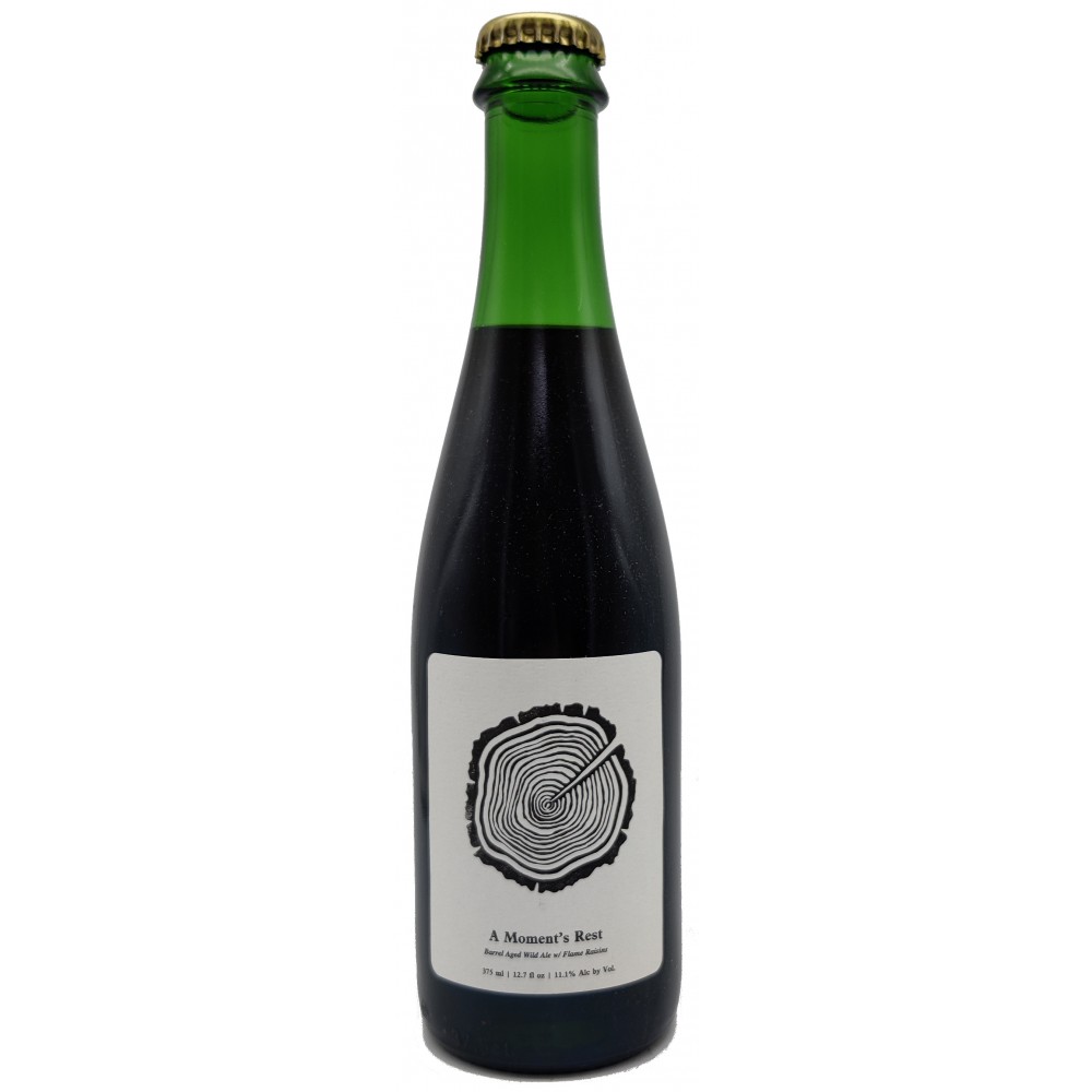"In late 2019 we blended together a one-year-old, spontaneously fermented, beer with a barleywine-inspired wild ale that had fermented and aged upon California Flame raisins for nine months. This blend was allowed to undergo a secondary fermentation, in barrel, marrying the two beers over the course of seventeen months before being laid to rest in bottles. The resulting beer, more akin to fortified wine in its profile, was packaged still and offers notes of brown sugar, late harvest grape, luxardo cherry, and cassis. From us to you, we present A Moment’s Rest."