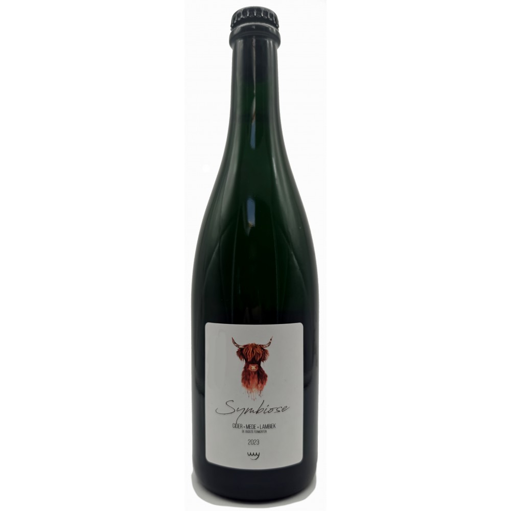"This Symbiosis is a delicate assembly of cider, lambic and mead. A wild yet gentle blend. Fermented, aged & bottled on the farm."
