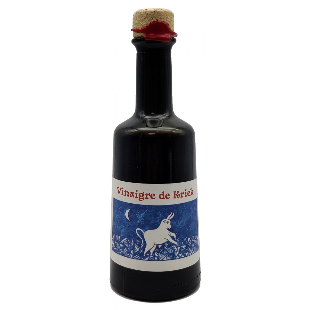 "Vinaigre vivant et artisanal réalisé avec de la Kriek de la Brasserie Cantillon. Acétifié en fut de chêne à Bruxelles."