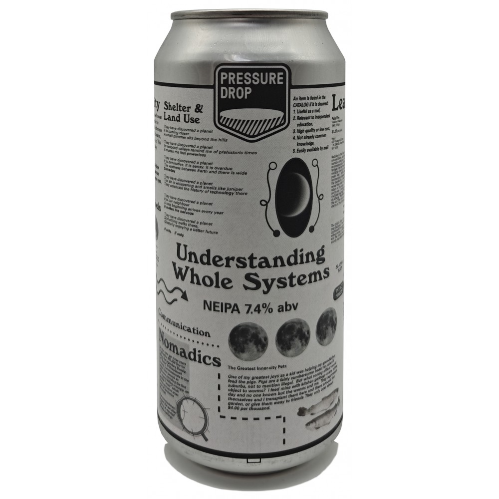 "Methodically blow your mind. Understanding Whole Systems is an IPA of substance and curiosity, an exploration of taste through the prism of Citra hops and a complete presentation London Fog yeast. Soft and hazy, complex and full. We enjoy drinking whilst reading entries from Pressure Drop’s own catalog, printed on the label. Stay Hungry. Stay Foolish."
