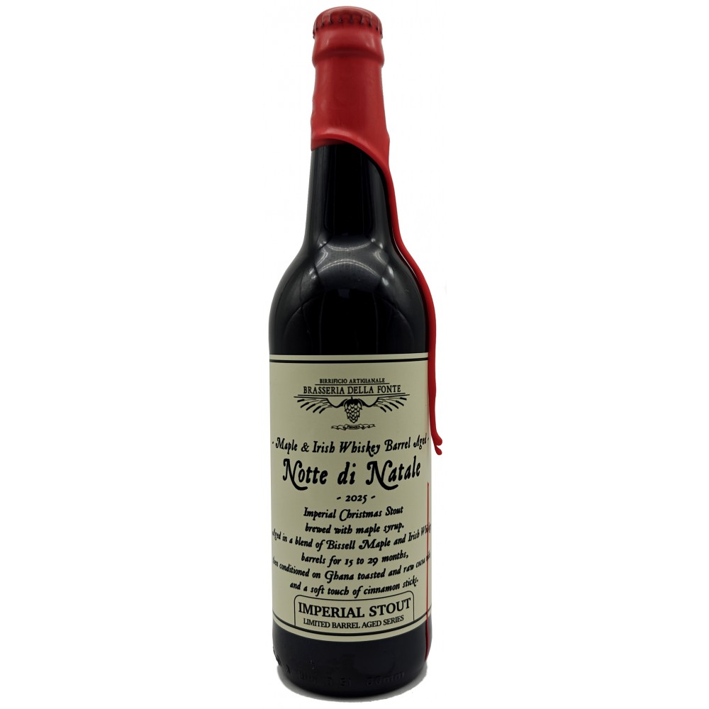 "Imperial Christmas Stout brewed with maple syrup. Aged in a blend of Bissell Maple and Irish Whiskey barrels for 15 to 29 months, then conditioned on Ghana toasted and raw cocoa nibs and a soft touch of cinnamon sticks."