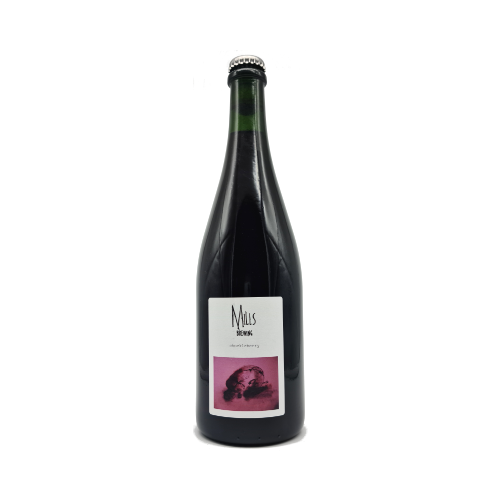 "Chuckleberry is a blend of two brews produced in June and September 2019. Made from a turbid wort, using rye malt and aged hops, they started life as potential blending options for our ‘house’ beer, Running Beer. Fermentation and maturation took place in barriques which formerly housed red Bordeaux. We chose three barrels to make a blend that would best fit the fruit: relatively soft and full on the palate to accommodate the fruit's acidity and tannin, complementary aromatics from the red Bordeaux and French oak, and a balancing funk to cut (but not obscure) the fruit. The resulting blend was added to a large quantity of locally grown chuckleberries to referment for five months. The beer conditioned in bottle for a further three months."