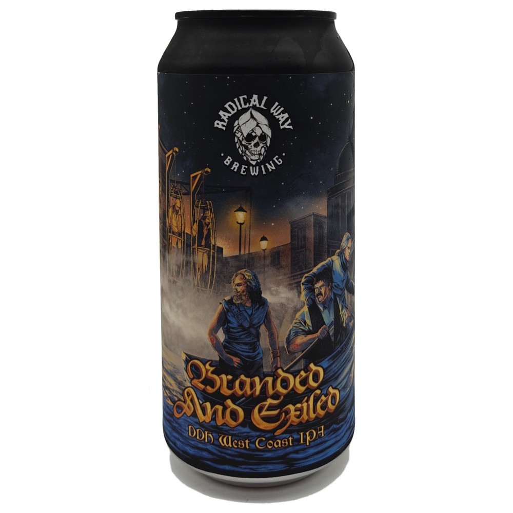 "“Branded and Exiled” is a DDH West Coast IPA at 6.8%, boasting a rebellious selection of Centennial, Eclipse, Eureka, Ahtanum and Amarillo hops. Paired to deliver the trademark refreshing bitterness of this style, this combination produces a piney, citrussy and tangerine aroma with a clean cut of mandarin and citrus notes."